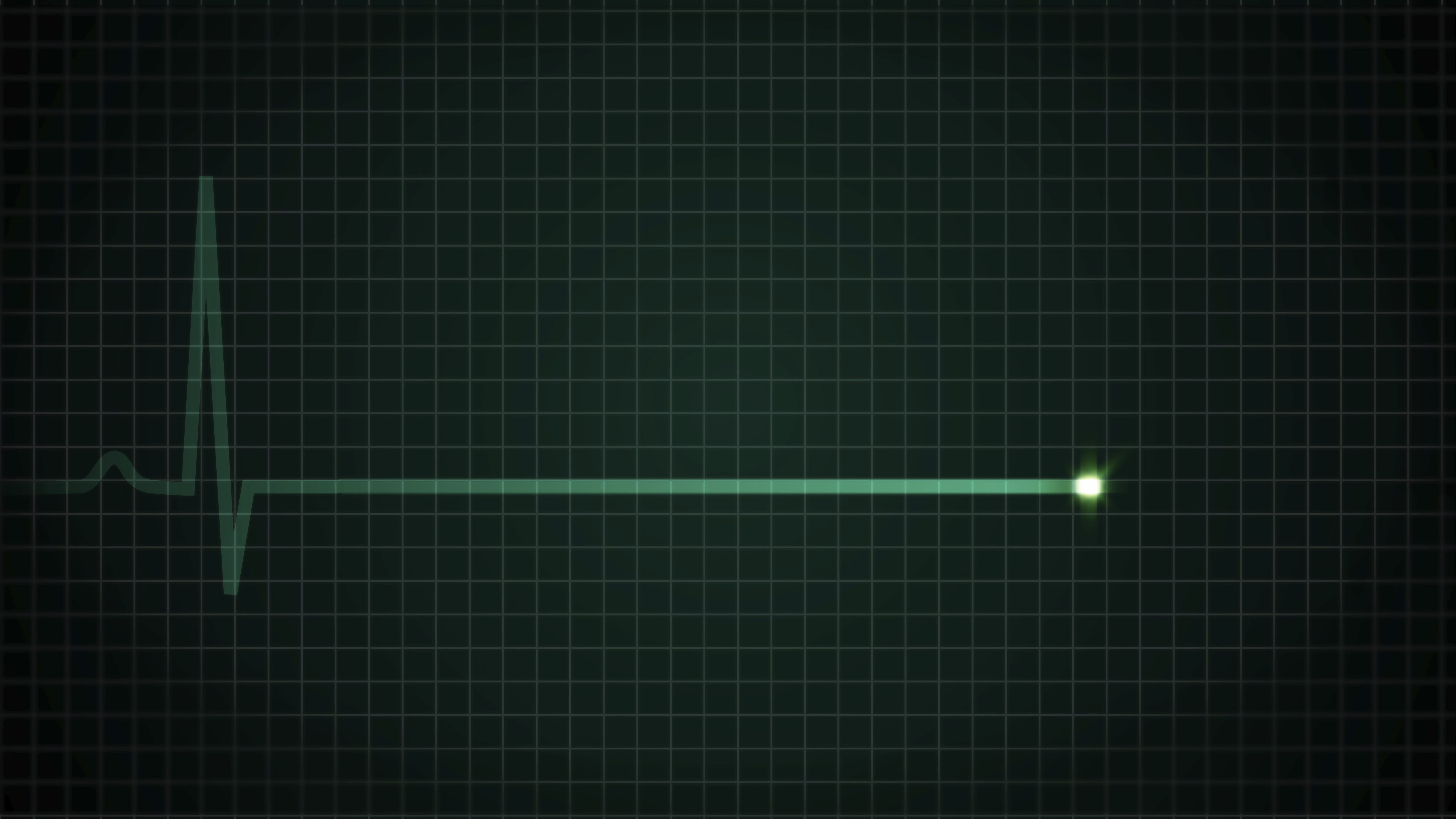 Red flatline medical EKG screen, flatline on ECG monitor. Heartrate monitor electrocardiogram on black background with grid. Seamlessly looping animation in 4K 50 fps