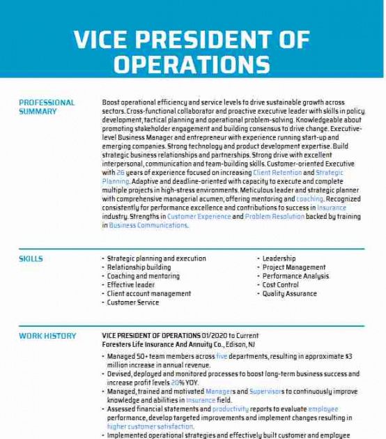 1+ Vice President of Operations Resume Exampl…